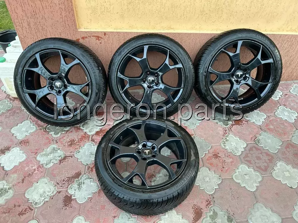 Стильний комплект коліс R20 у зборі для Tesla Model Y. Оригінальні легкосплавні диски у чорному кольорі з встановленими шинами. Індивідуальний дизайн додає авто агресивного та сучасного вигляду. Диски не биті, гума без порізів і гриж. Балансування збережене – готові до встановлення без додаткових витрат.