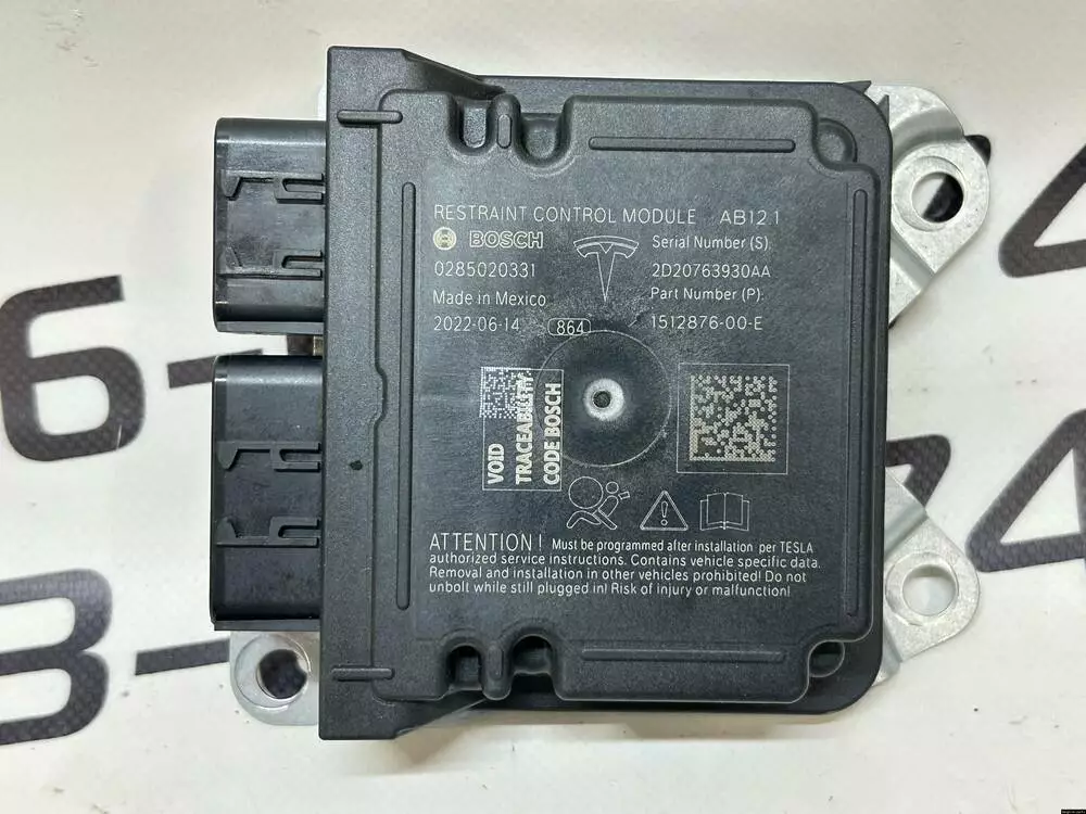 Модуль SRS Airbag з артикулом 1512876-00-E є центральним електронним блоком керування подушками безпеки для Tesla Model 3 та Tesla Model Y. Він відповідає за коректну роботу системи пасивної безпеки, у тому числі за активацію подушок у разі зіткнення.