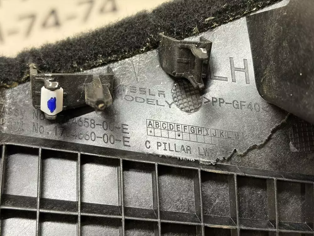 Це оригінальна накладка внутрішнього порогу задніх лівих дверей, знята з Tesla Model Y у 5-місному виконанні. Артикул: 1704658-00-E. Виготовлена з міцного пластика та оздоблена шумопоглинаючим войлочним покриттям, яке відповідає заводському стандарту салону Tesla.