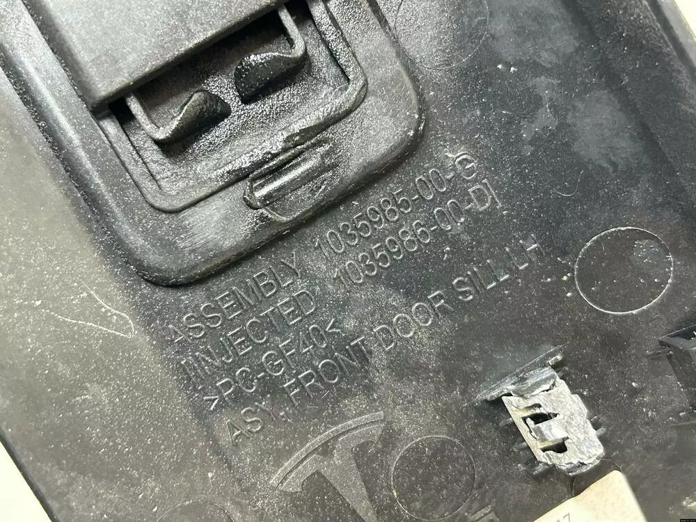 Оригінальна накладка з артикулом 1035985-00-D встановлюється у проєм передньої лівої двері Tesla Model X і виконує як декоративну, так і захисну функцію. Вона закриває край порогу та частину внутрішньої обшивки, запобігаючи потраплянню бруду, пилу та вологи в порожнини кузова.