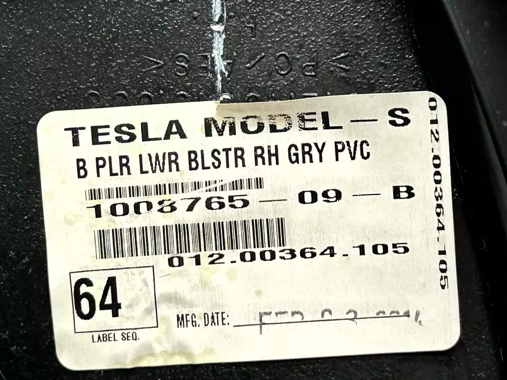 Накладка центральної стійки нижня права (сіра) Tesla Model S 1008765-09-B