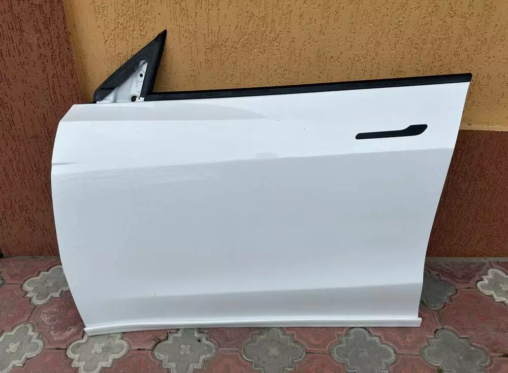 Передні ліві двері, демонтовані з Tesla Model Y після страхової події на американському аукціоні. Заводське біле покриття збережене — без потреби у фарбуванні чи поліруванні. Метал не має деформацій, шви та стики в ідеальному стані. Це вживана деталь, перевірена на нашій авторозбірці Tesla перед тим, як потрапити у продаж.