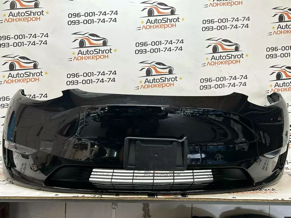 Оригінальний передній бампер Tesla Model Y у чорному кольорі, артикул 1493745-00-A, повністю укомплектований і знятий з авто 2020–2021 року з системою Intel. Включає парктроніки, проводку, решітку, дві протитуманні фари з вбудованими денними ходовими вогнями (ДХО). Усе в зборі — стає по заводу, зазори ідеальні.