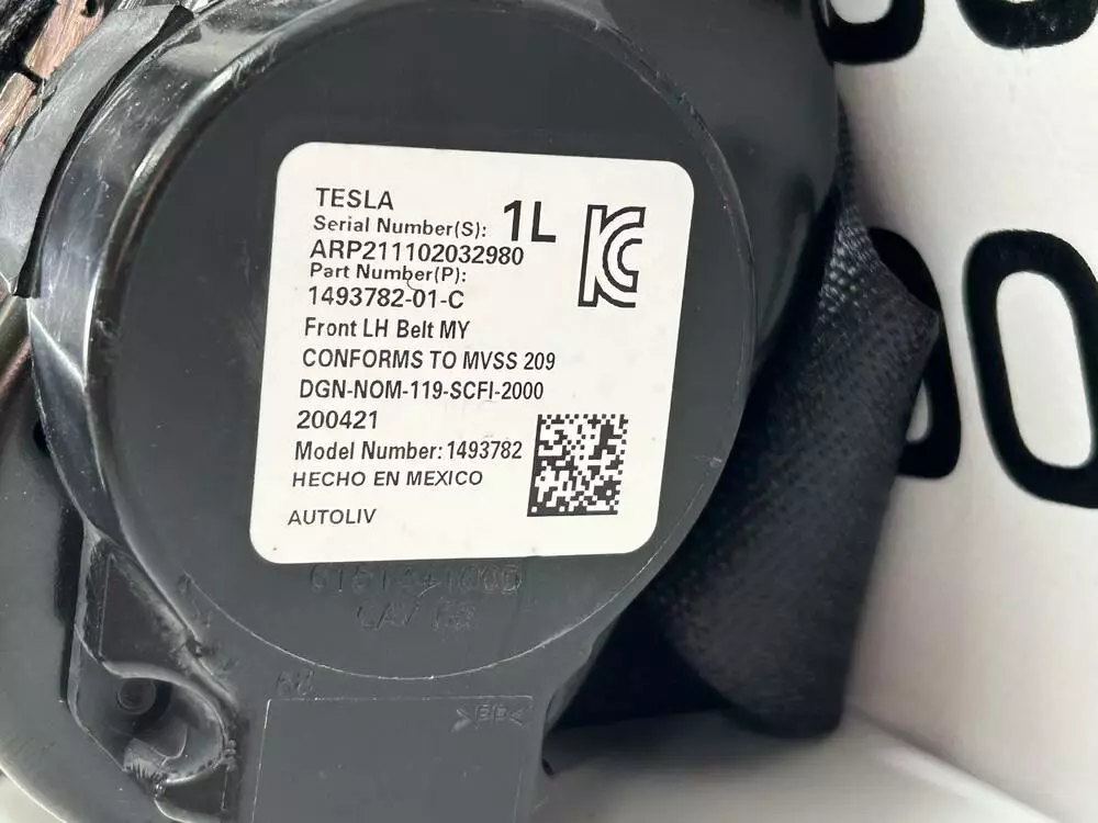Оригінальний ремінь безпеки водія для Tesla Model Y, з номером 1493782-01-C. Надійна комплектуюча системи пасивної безпеки, яка забезпечує фіксацію водія під час руху та в критичних ситуаціях. Укомплектований піропатроном (не спрацьований), механізм змотування працює без збоїв.